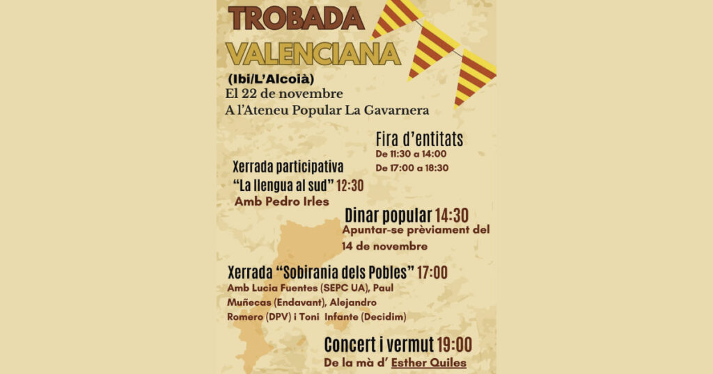 Ateneu Popular La Gavarnera i el col·lectiu Defensa del País Valencià han organitzat per al dissabte 22 de novembre una trobada valenciana; una jornada de germanor, debat i cultura popular. Entre les activitats programades per a eixe dia estan un fira d’entitats, durant tota la jornada, i una xerrda participativa sota...
